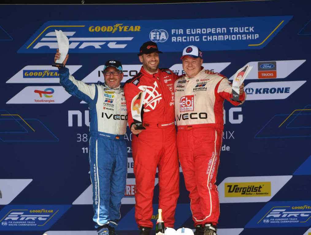 Da bleibt für Jochen Hahn zurzeit nur der zweite Meisterschaftsplatz. Wer nun die Nr. 3 hinter Hahn erwartet, wird enttäuscht. Sascha Lenz (Nr. 3) hat noch mit einigen technischen Problemen bei seinem MAN-Neubau zu kämpfen. Den dritten Platz sichert sich Steffi Halm, die 3 Podienplätze einfahren konnte. Noch erstaunlicher ist die Performance von Heimkehrer René Reinert. Mit dem Ex-MAN von Norbert Kiss gelang dem Spediteur bei seinem Heimrennen in der Lausitz gar ein Sieg. Reinert liegt vor Sascha Lenz auf dem 4. Meisterschaftsplatz.