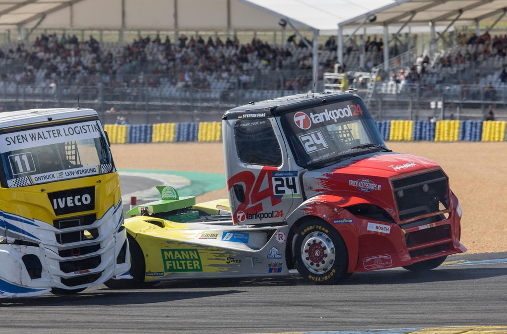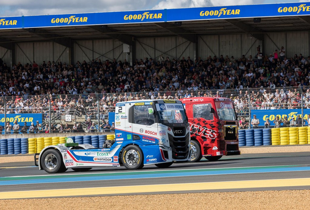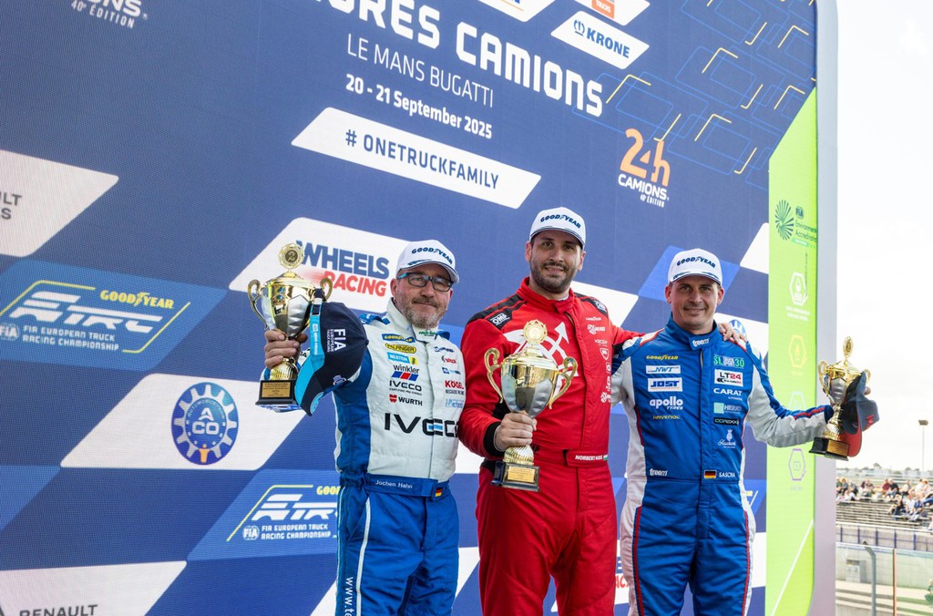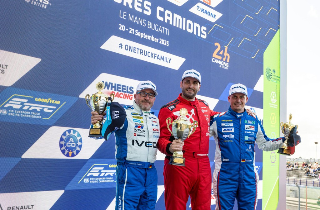 Wie erwartet, sicherte sich Norbert Kiss bereits in Le Mans den siebten EM-Meisterschaftstitel. Der Ungar und das Team Révész Racing sind seit Jahren in einer unglaublichen Form. Auch dieses Jahr gewann er bisher alle Zeittrainings und die Big-Point-Rennen 1 und 3. Herzlichen Glückwunsch Norbert Kiss und seinem Team. Genauso souverän geht der Vizetitel wieder an Jochen Hahn, dem wir und seinem Team auch herzlich gratulieren. Die ETRC bot in Le Mans wieder spannenden Trucksport. Die Podien gingen in der Gesamtwertung an die Piloten Kiss, Lenz, Hahn beziehungsweise Kiss, Hahn Lenz in den Rennen 1 und 3 sowie an Reinert, Halm und Hahn in den Rennen 2 und 4. Das hat zur Folge, dass Lenz und Halm mit nur einem Punkt Unterschied zum Finale nach Jarama reisen, um dort den dritten Gesamtplatz auszufahren. Auch zwischen Albacete und Reinert, der in Le Mans Saisonsieg Nr. 3 und 4 einfuhr, geht es eng zu. Beide trennen nur zwei Punkte beim Kampf um den fünften Meisterschaftsplatz. Noch spannender wird in Jarama der Kampf in der Chrome-Wertung. Nach den vier Le-Mans-Rennen trennen die ersten vier Piloten nur zwei Punkte! Hecker und Smith führen punktgleich vor Newell und Taylor, die nur jeweils einen Punkt dahinter liegen. Mehr Spannung geht nicht.